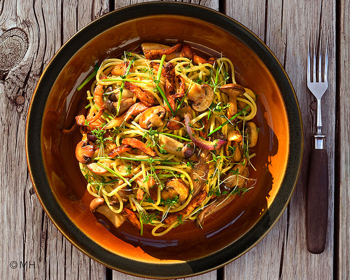 herzhaften Waldpilzen, Spaghetti und einer kräutrigen Sauce kann jederzeit